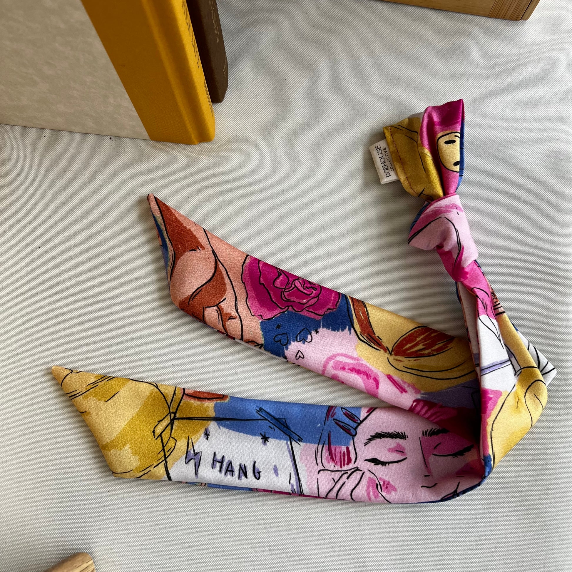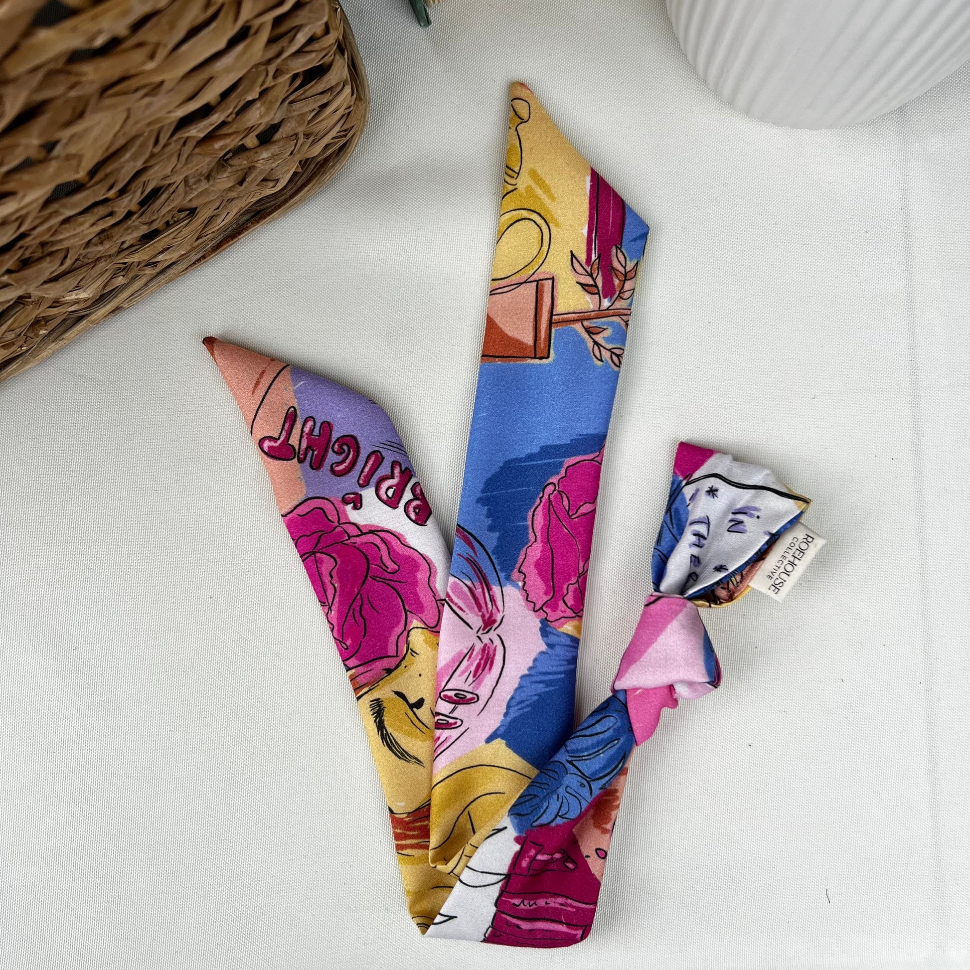 - Style ideas: neck scarf, handbag handle, handbag bow, ponytail scarf