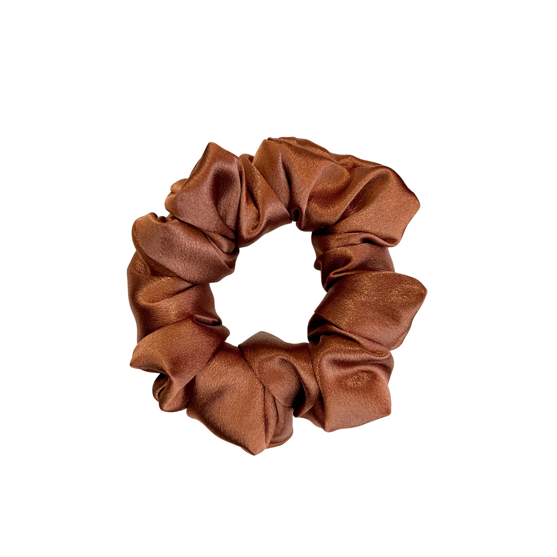 Golden brown scrunchie with a subtle shimmer. This warm, earthy-colored scrunchie is inspired by red clay soil in Mississippi and Georgia.