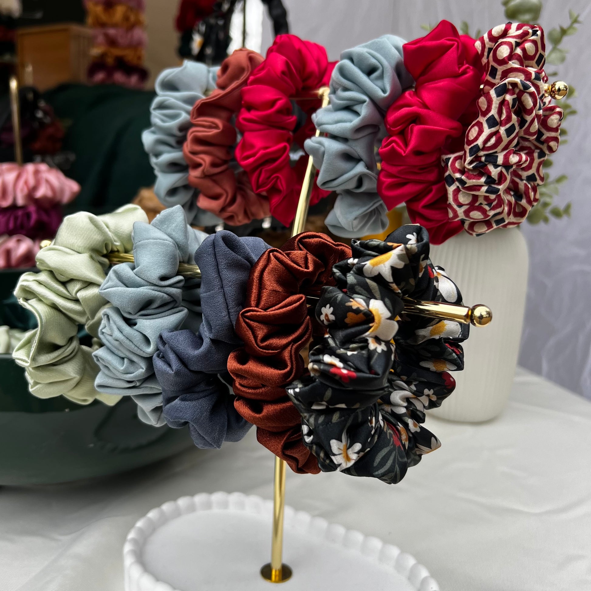 Golden brown mini scrunchie inspired by red clay soil in Mississippi and Georgia.