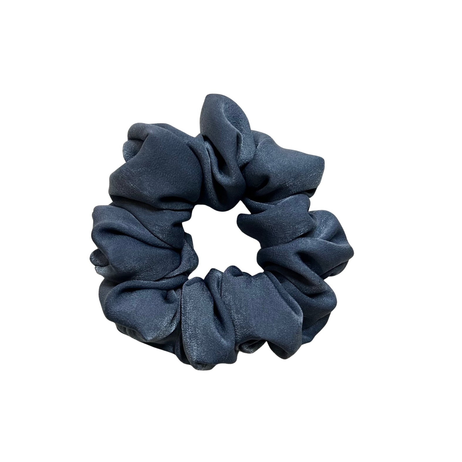 Slate blue scrunchie reminiscent of storm clouds on a cozy evening in.