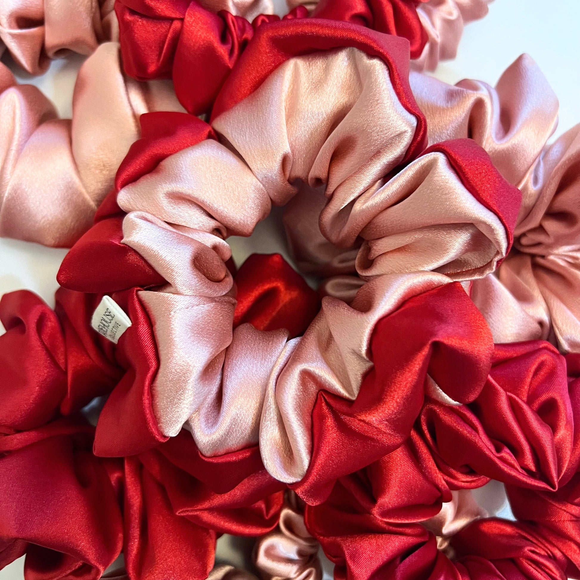 Two-tone red and pink scrunchie inspired by Love Month and a beautiful, kind wedding photographer, Val. It lives up to the sweetness and joy of its namesake.